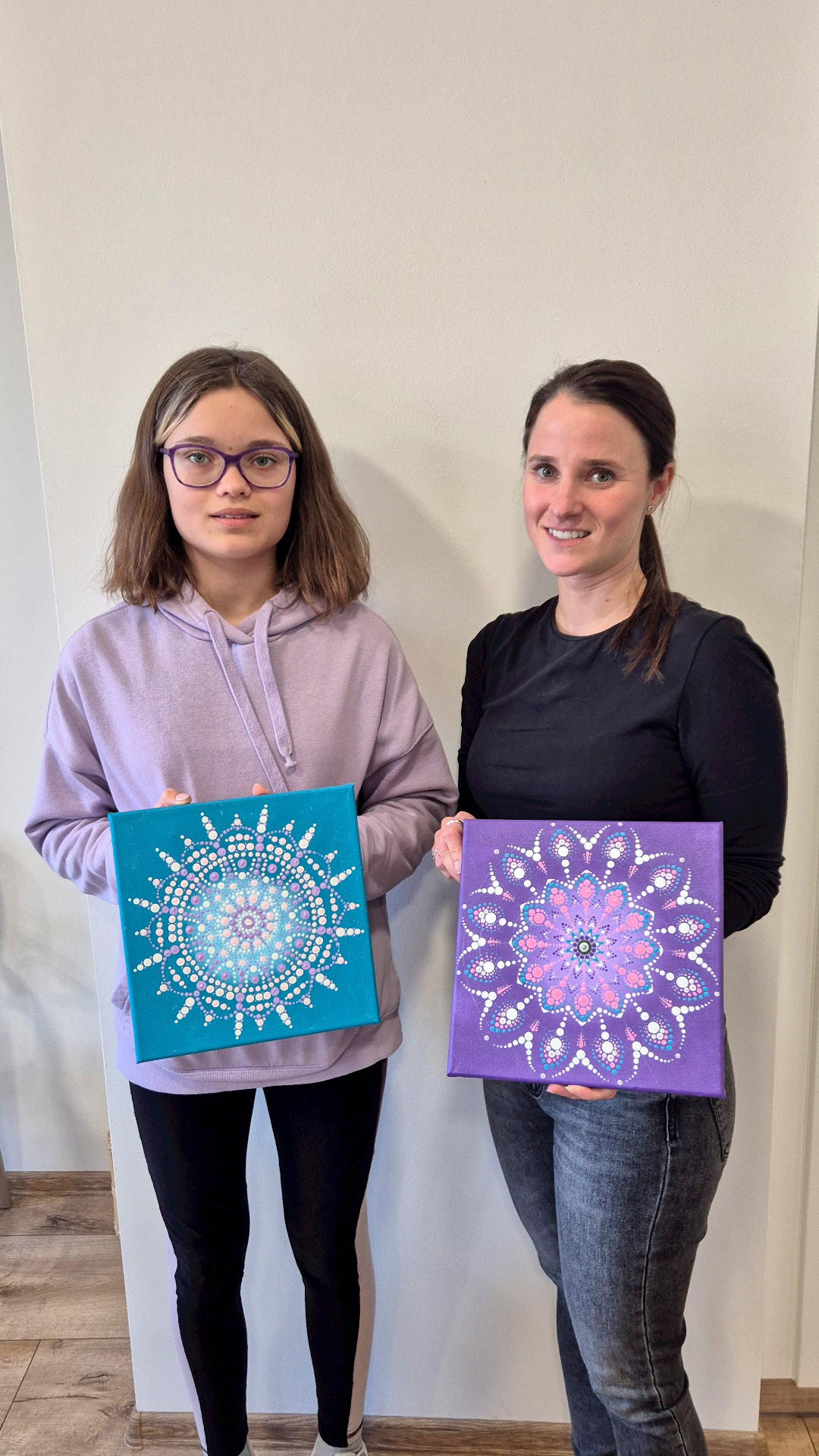 Odneseš si nejen krásnou mandalu (25 × 25 cm), ale i klidnou mysl, dobrou náladu a chuť malovat dál.